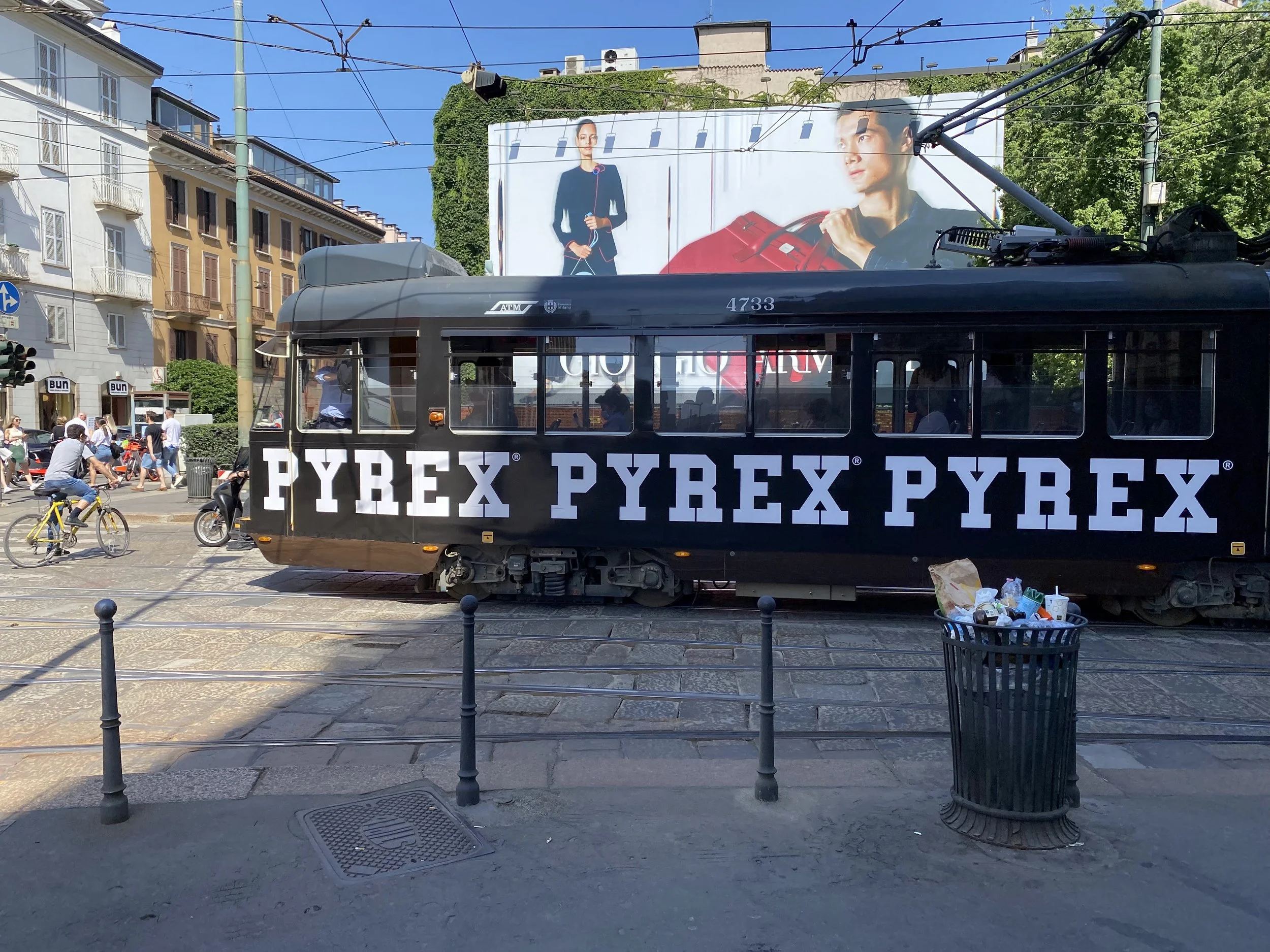 Streetcar emblazoned with Pyrex logo to honor the late Virgil Abloh
